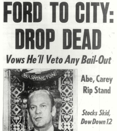 President Ford wasn’t helpful. 1975 local newspaper headline.