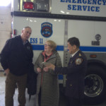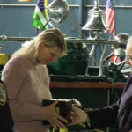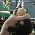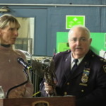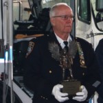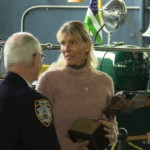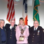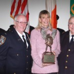 The ceremony was followed with the presenting of checks to the winners of the first annual Assistant Chief Walter E. Klotzback REMA Scholarship Award. CLICK HERE to read the winning essays. Then the surprise of the day: the presentation of a custom statue of Saint Michael to retired Police Officer Jeannie Kelly, for her selfless and tireless work of advocating for those first responders effected by their response to the attacks on 9/11. The Pipes and Drums of the Emerald Society of the NYPD closed the ceremony with their beautiful playing of God Bless America.