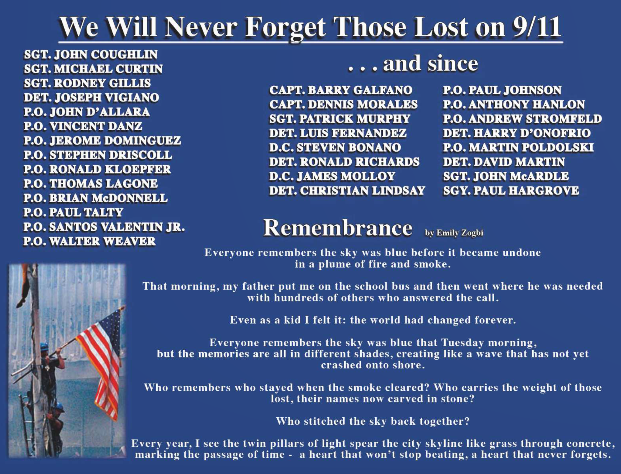 September 11th tribute poetry by Emily Zogbi, daughter of retired ESU Detective Joe Zogbi