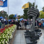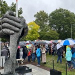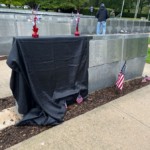 The Walls of Honor is NOT a memorial. It is a series of stainless steel panels engraved with the names of Veterans who have bravely served our Nation during wartime or protected us during peacetime. (see full story here). The 2022 Walls were unveiled on Saturday, October 1. Forecasts severe rain and wind did not keep away the families and friends of those so honored.